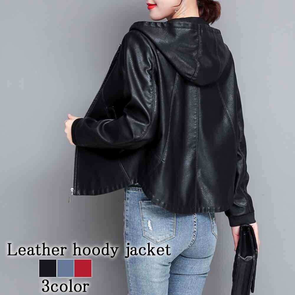 ルーズなシルエットとフードがラフな雰囲気のレザージャケット。