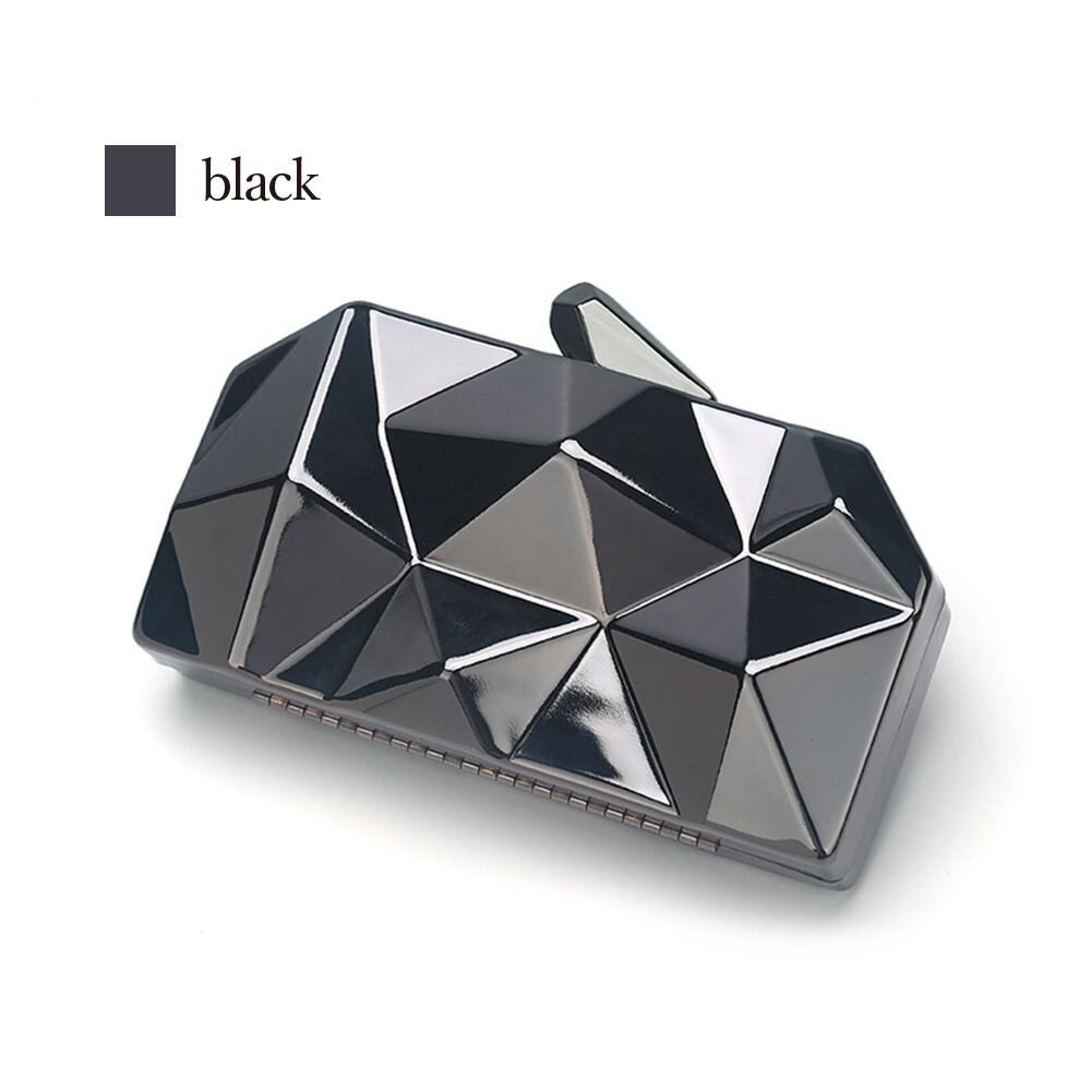 メタリックカラーとジオメトリックな形がインパクトの強いクラッチバッグ。