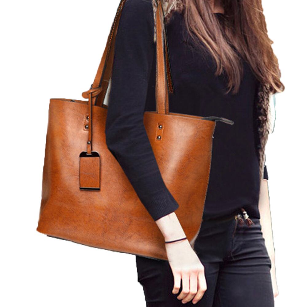 ソフトな素材感のシンプルなフェイクレザートートバッグ。