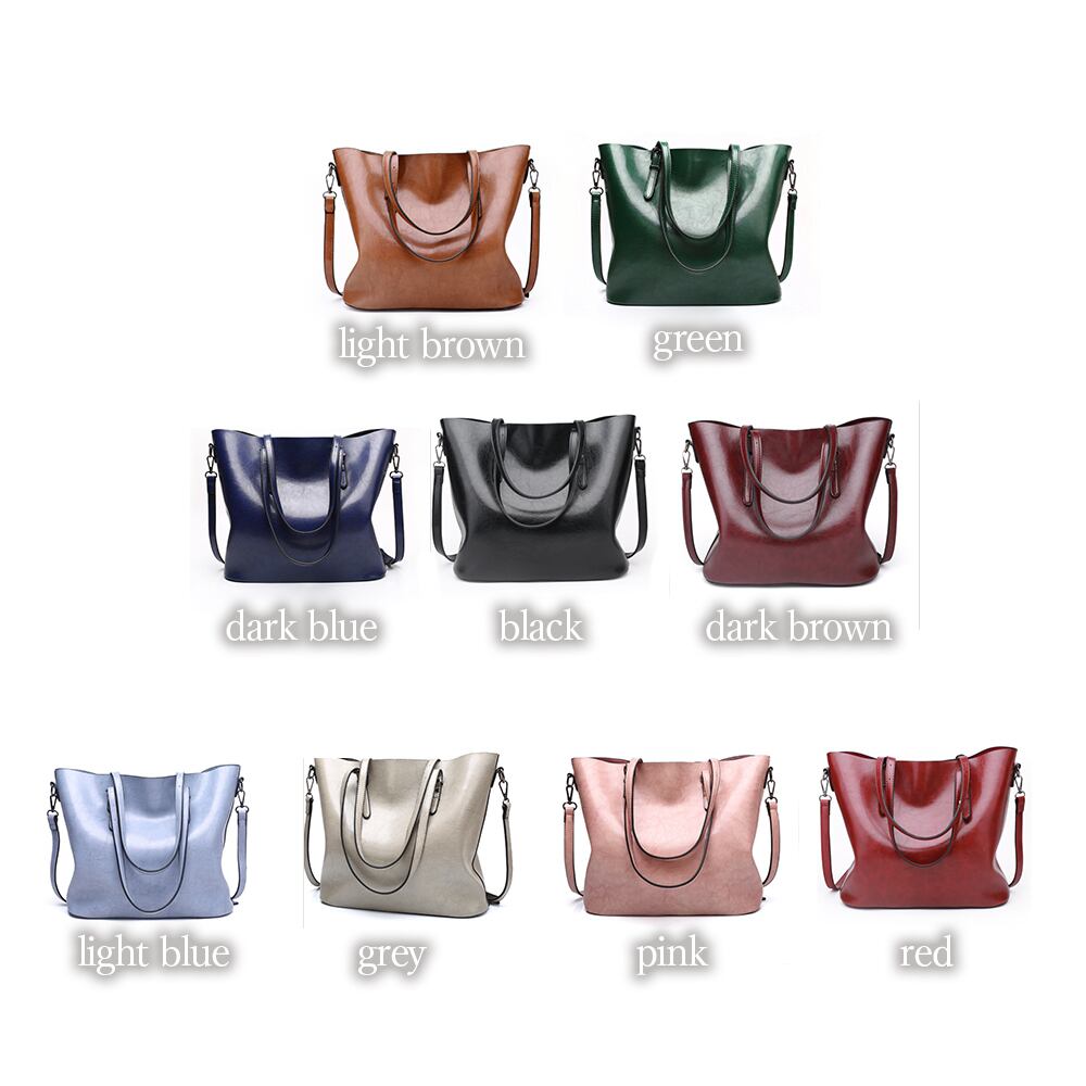 オイル加工の光沢のある素材感が落ち着いた印象のフェイクレザートートバッグ。