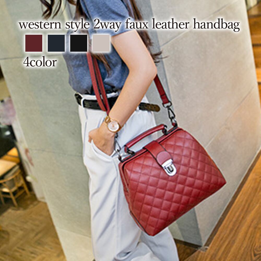 欧米風2WAYフェイクレザーハンドバッグ