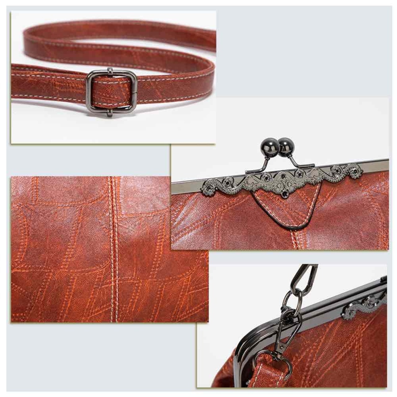 アンティーク風の金具にレザーの風合いがレトロでお洒落。