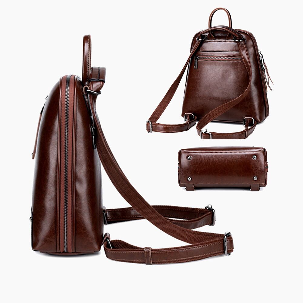 丸みのあるフォルムが女性らしいレザーバックパック。
