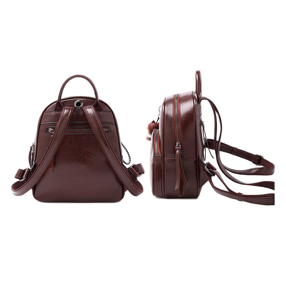 コロンとしたデザインがフェミニンな印象のレザーバックパック。