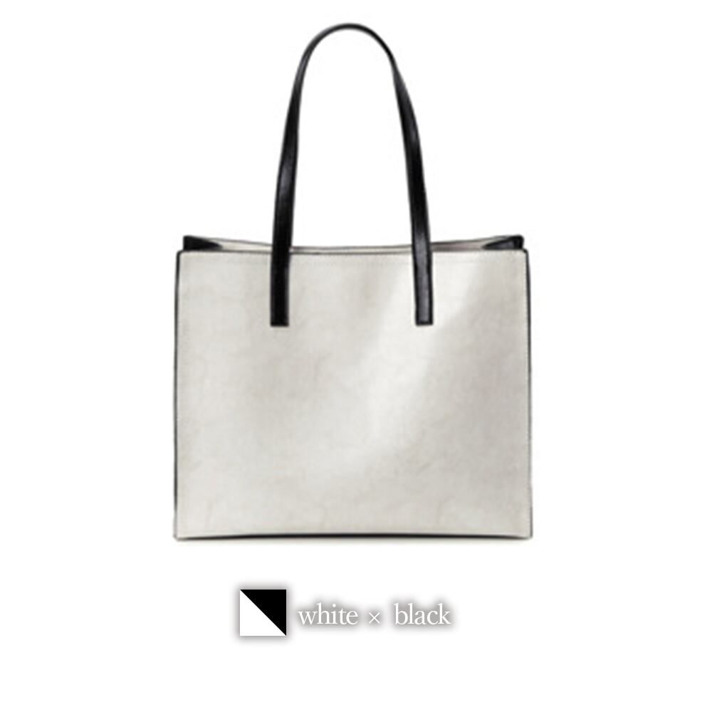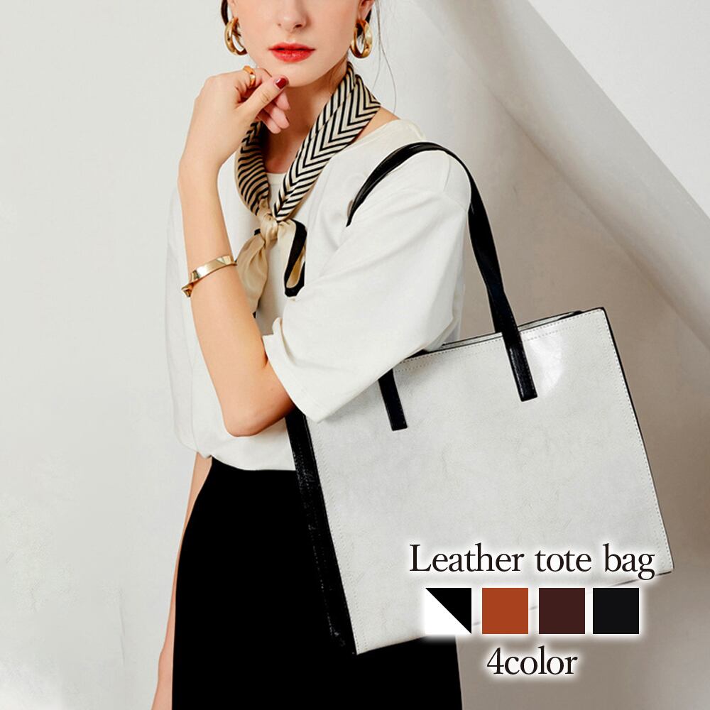 レザー素材が大人な雰囲気を醸し出すシンプルなトートバッグ。