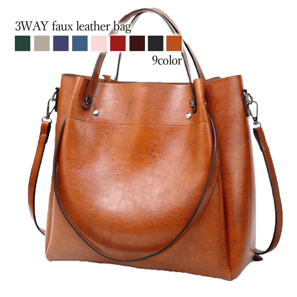 シンプルなデザインでどんなスタイルにも合わせやすいフェイクレザーバッグ。