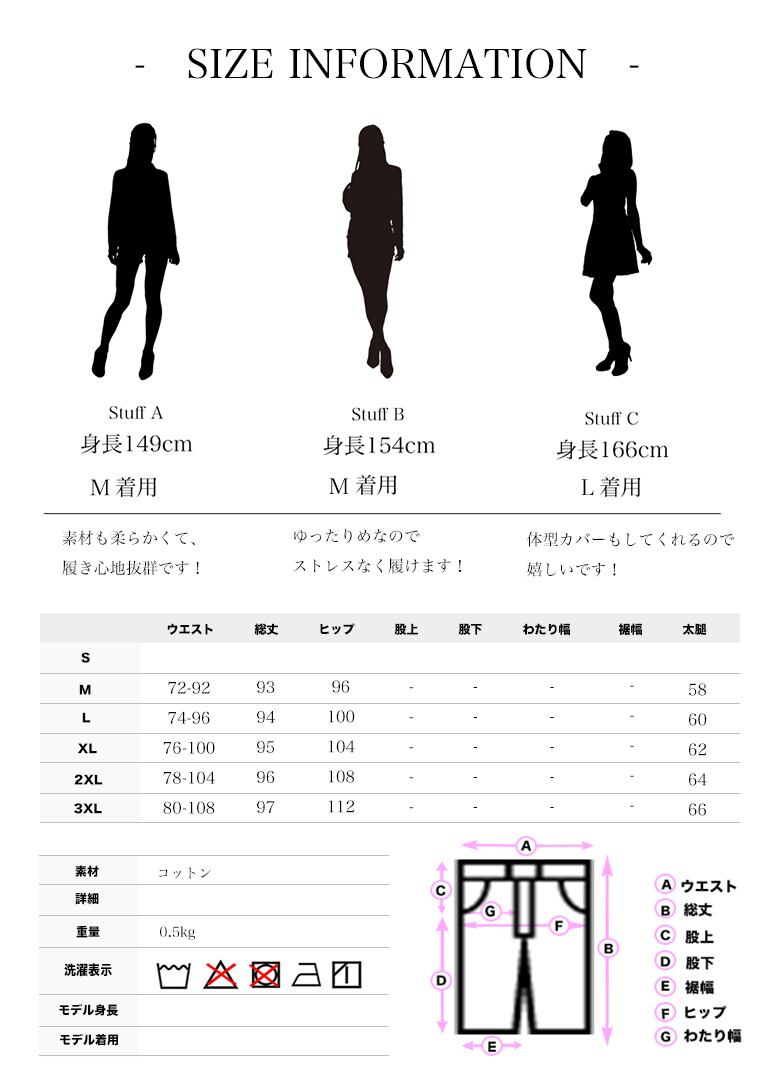 ・3XLサイズ ウエスト80-108 ヒップ112 総丈97 太腿66