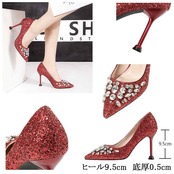 スパンコールのボディにビジューをあしらった華やかなハイヒール。