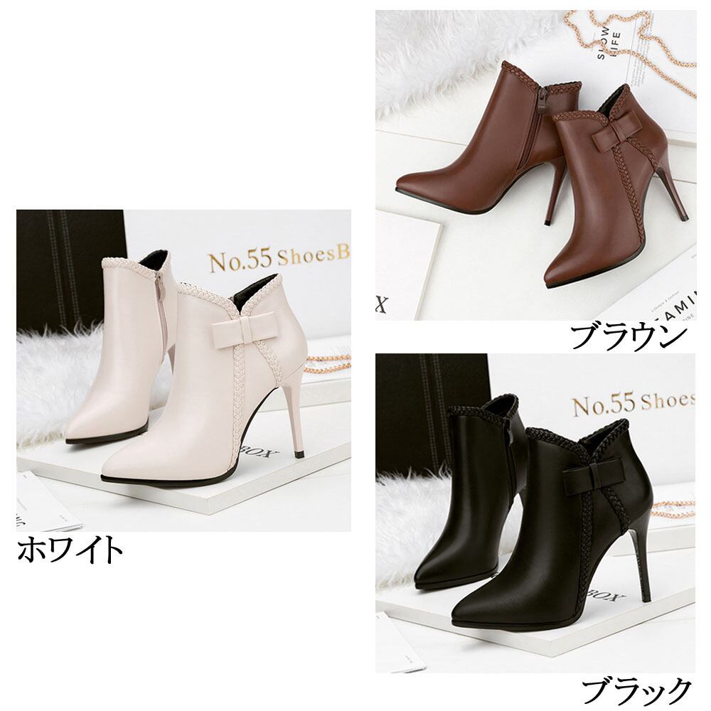サイドのリボンが可愛いフェイクレザーのアンクルブーティ。