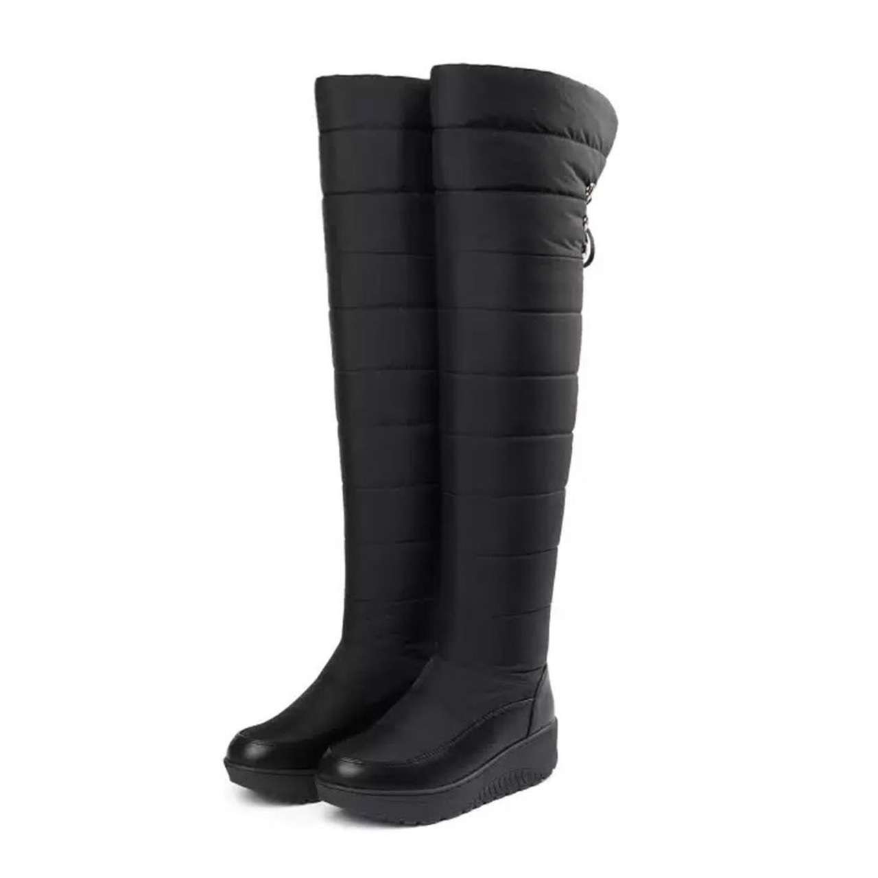 防寒性抜群なオーバーニーの中綿スノーブーツ。