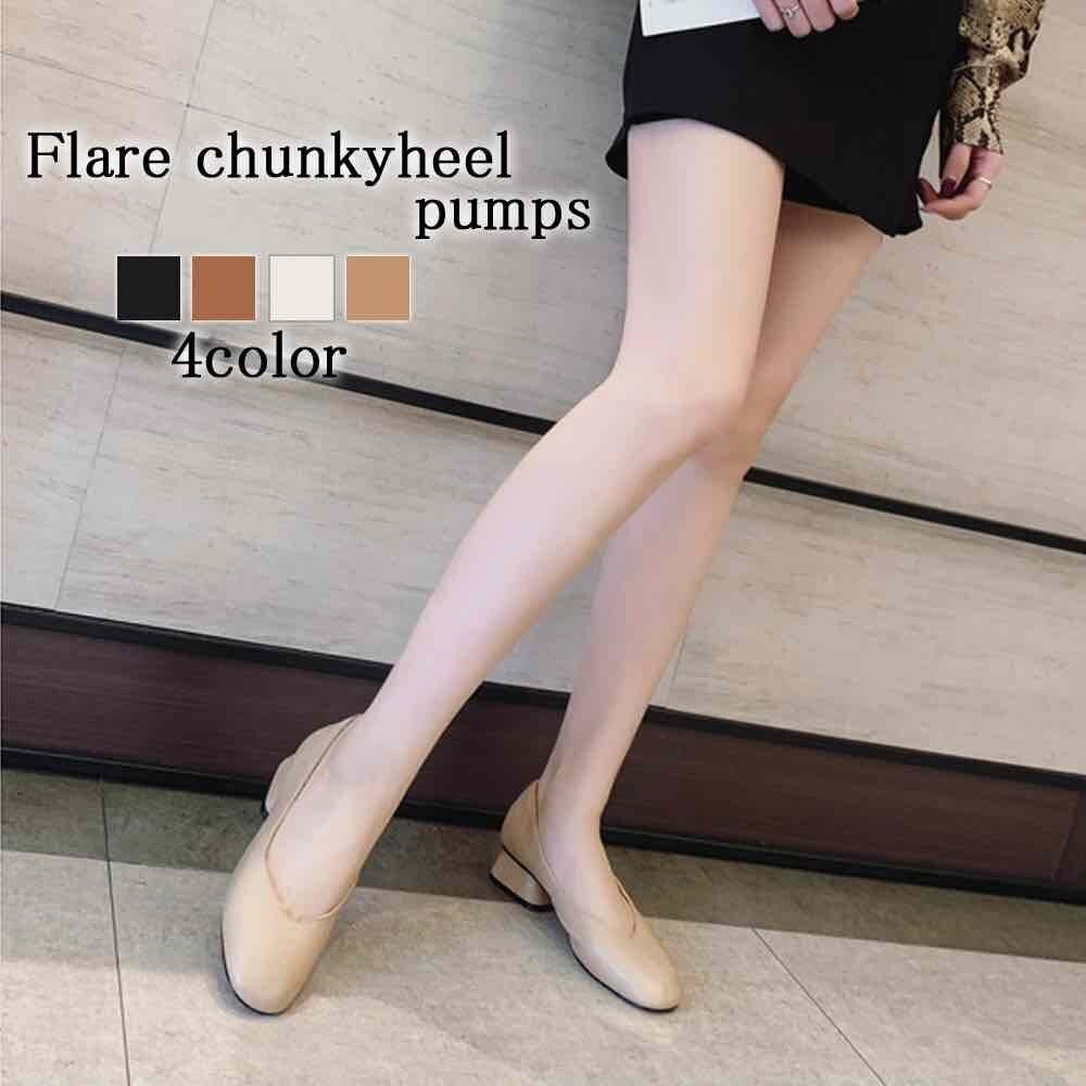 フレア型のチャンキーヒールで大人っぽい印象に。