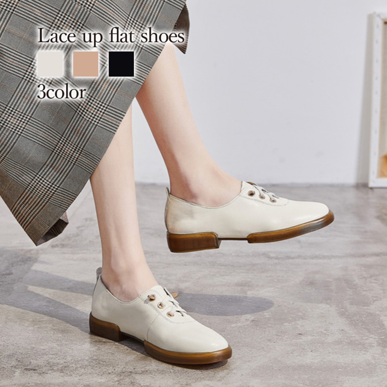 レースアップフラットシューズ