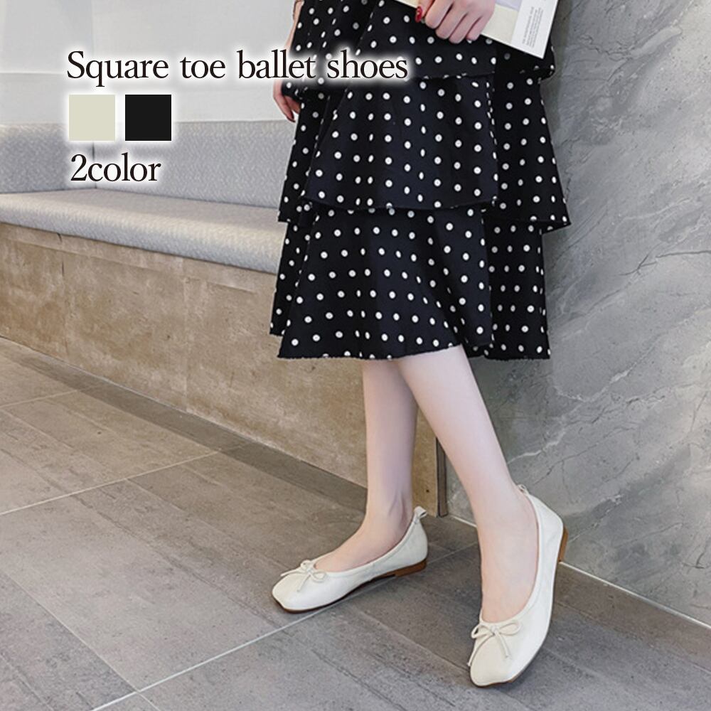定番バレエシューズにトレンドのスクエアトゥを取り入れて。