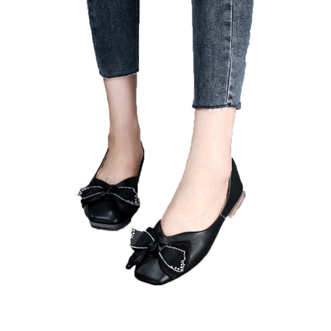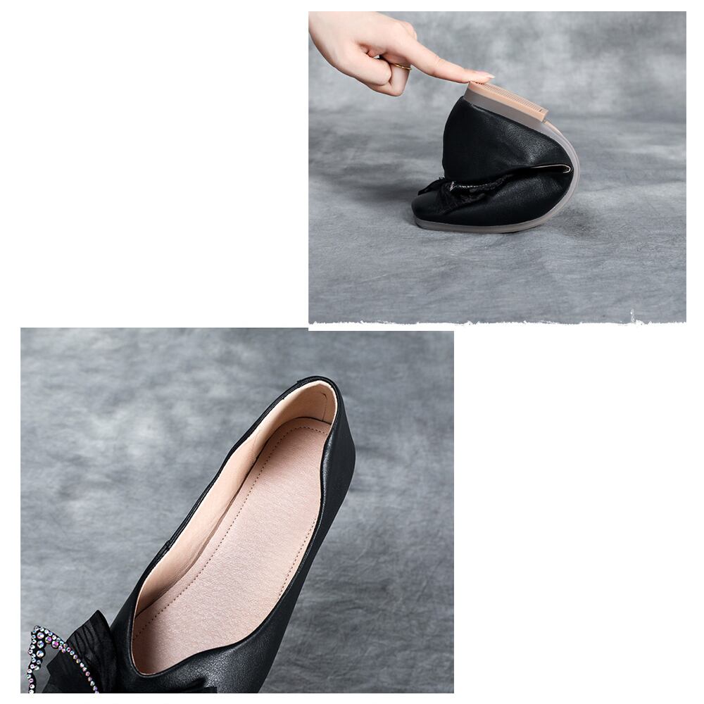 リボン付きレザーフラットシューズ