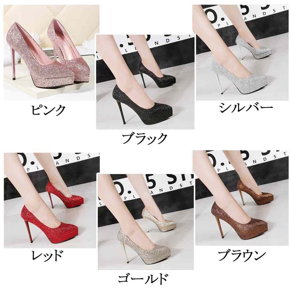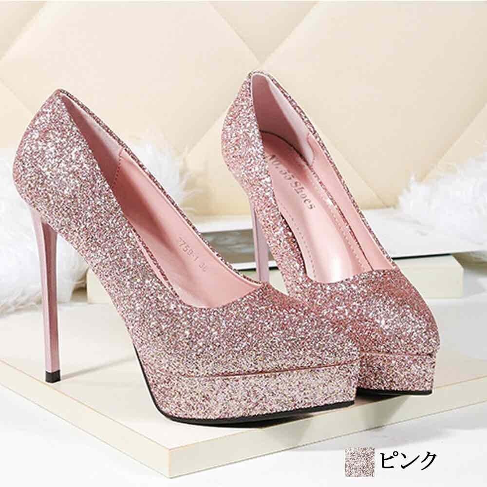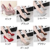 細かなスパンコールが上品な印象の厚底ハイヒール。