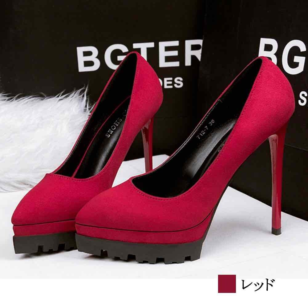 厚いプラットフォームが存在感を感じさせるスエードハイヒール。