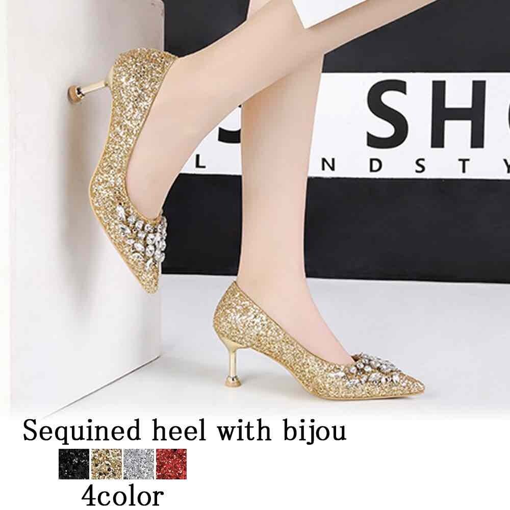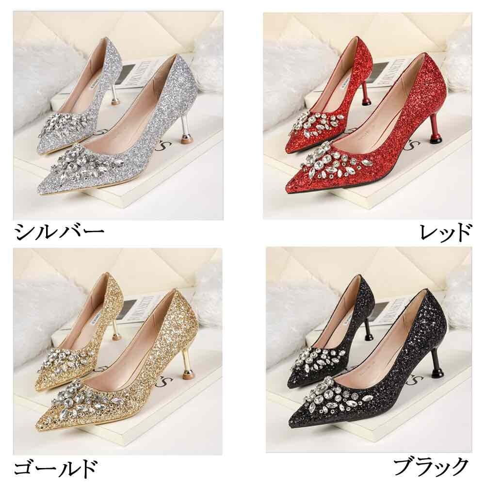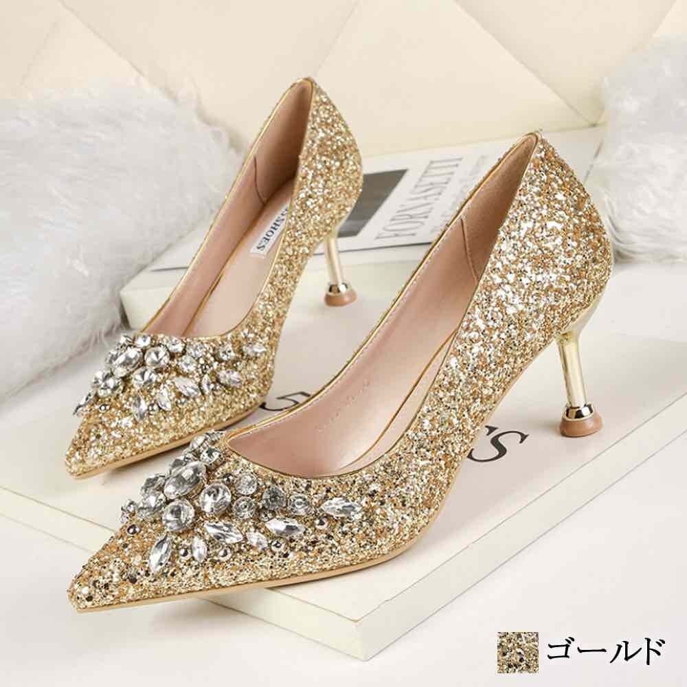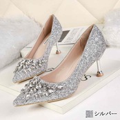 ビジューとスパンコールのきらめきが華やかな足元を演出してくれるスティレットヒール。