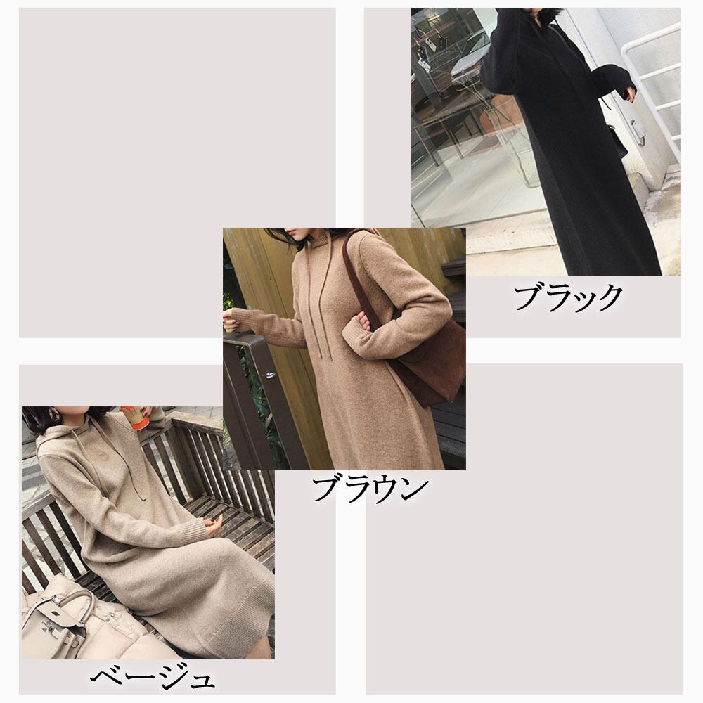 フードニットワンピース