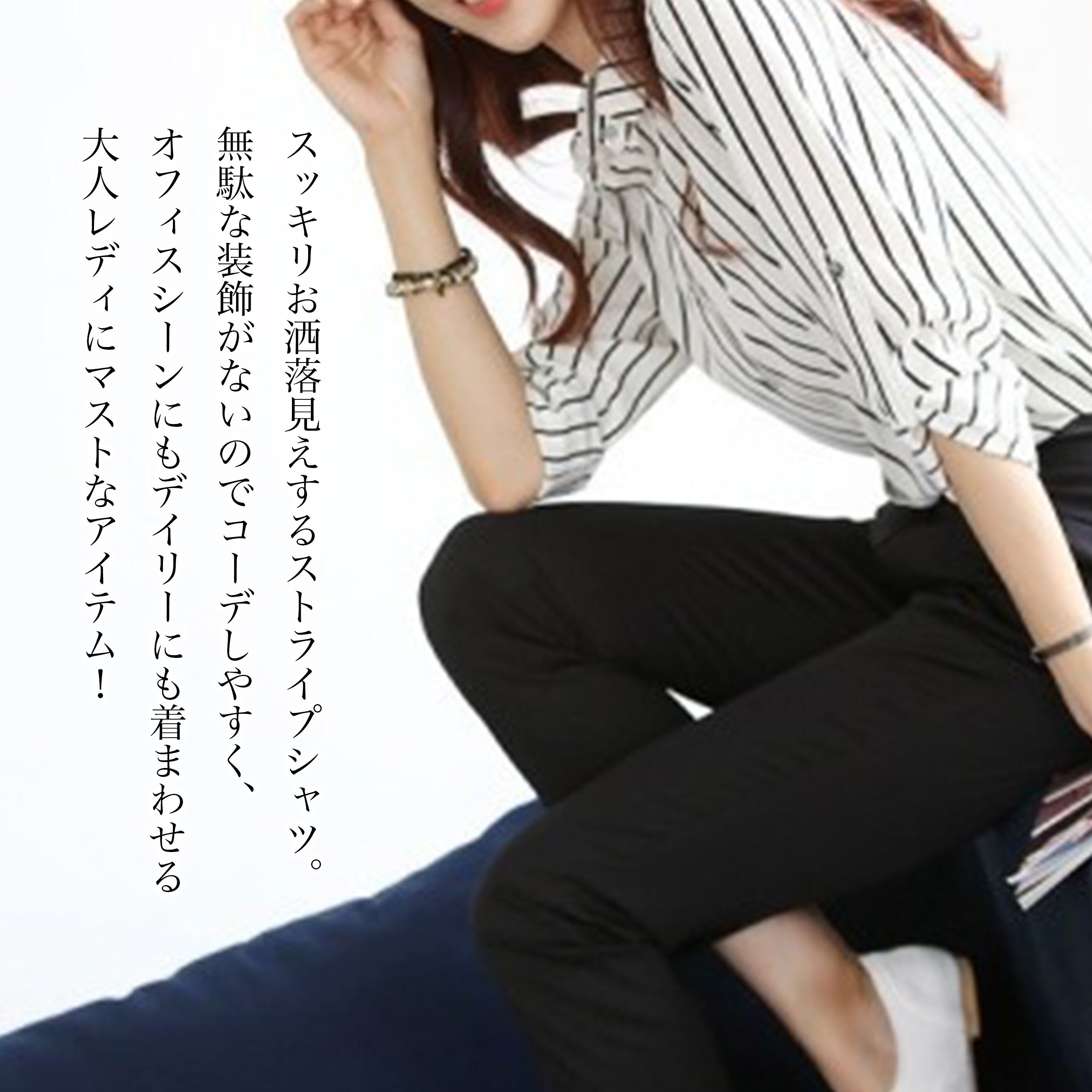 スッキリお洒落見えするストライプシャツ。