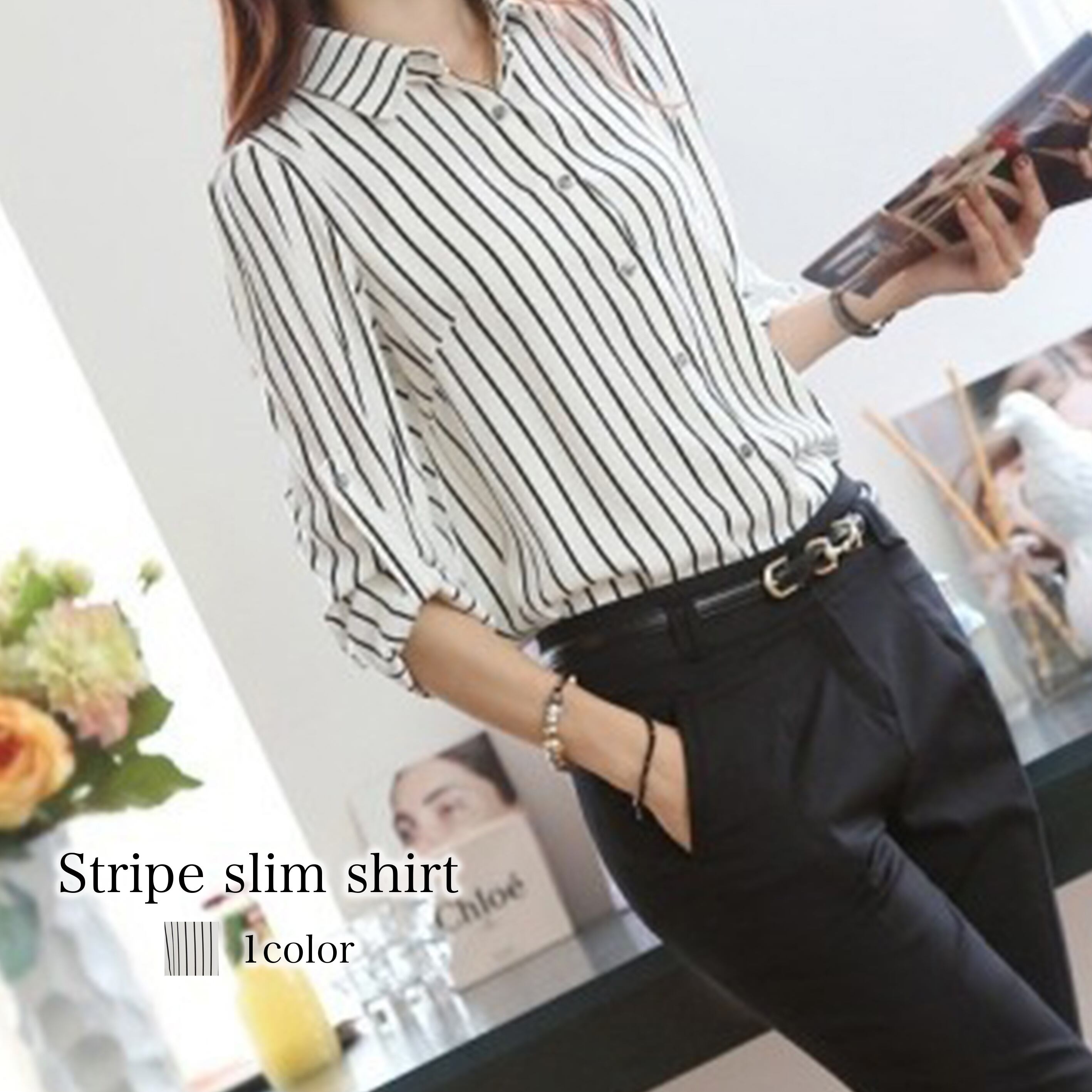 ストライプスリムシャツ