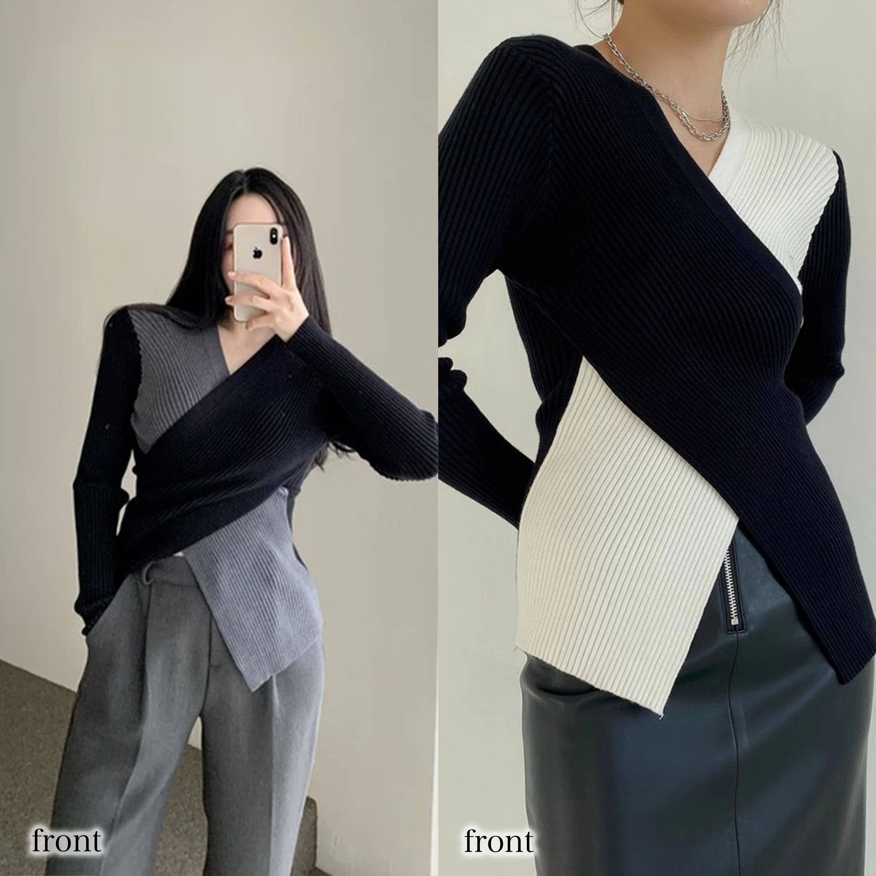華奢見えが叶うクロスデザインニット。