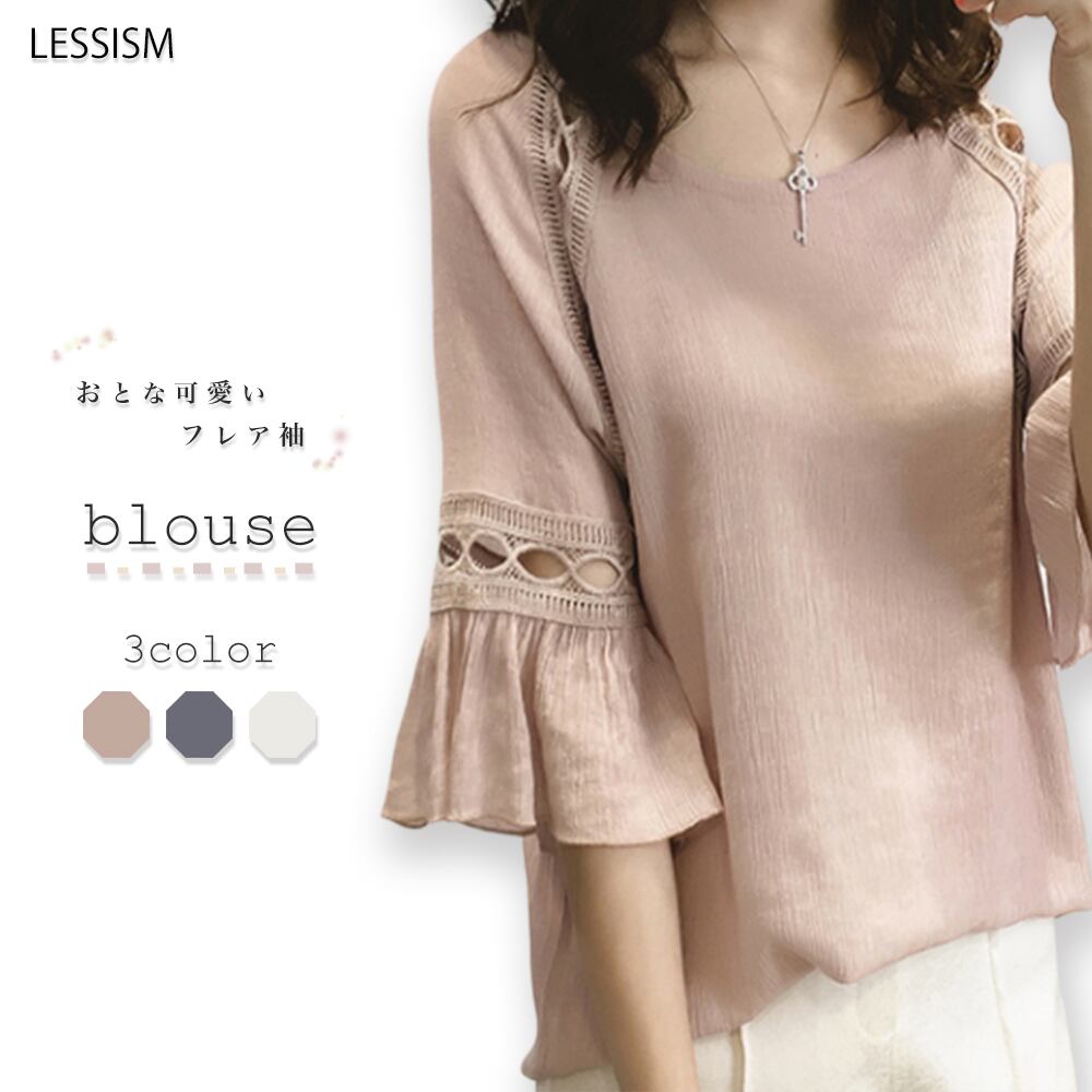 ひらりとボリュームのあるフレア袖がポイントのお洒落ブラウス。