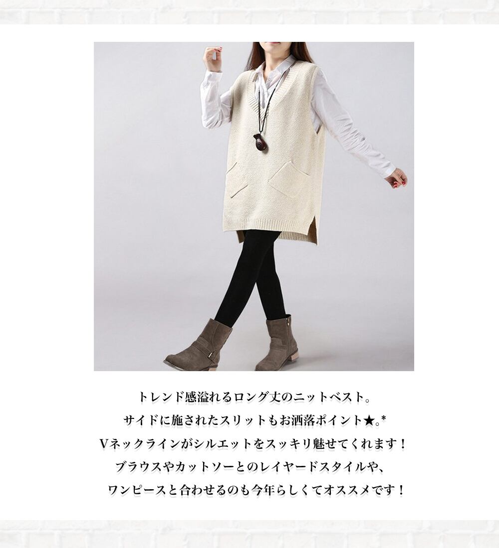 トレンド感溢れるロング丈のニットベスト。