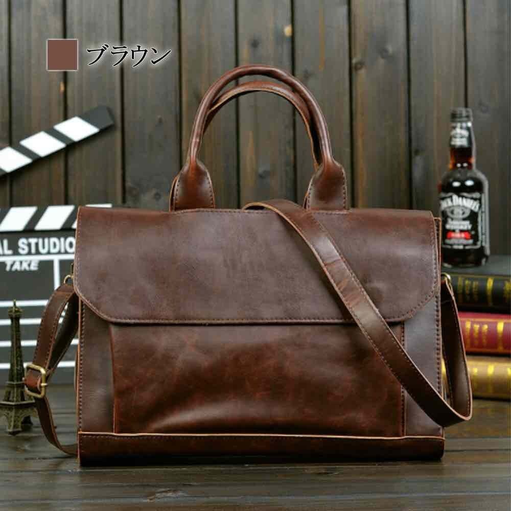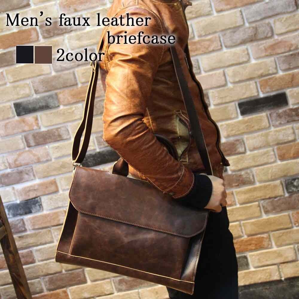 ソフトな素材感でヴィンテージ風にデザインされたフェイクレザーブリーフケース。