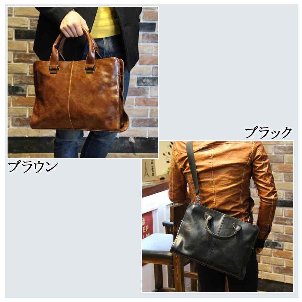 オイルワックス加工の素材感が高級感を感じさせるフェイクレザーのブリーフケース。