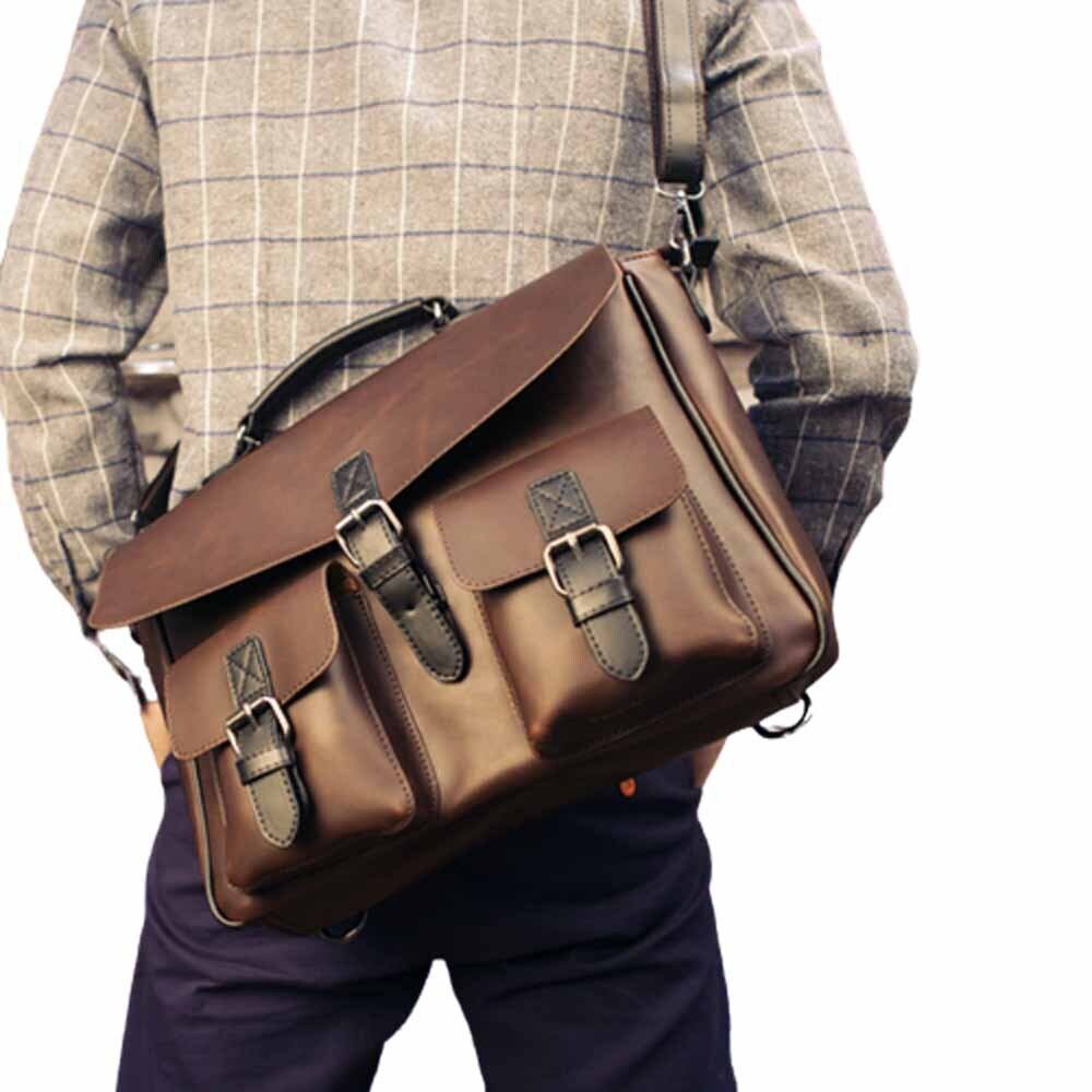 バイカラーの配色とマットな素材感がさりげないオシャレを感じさせるレザーバッグ。