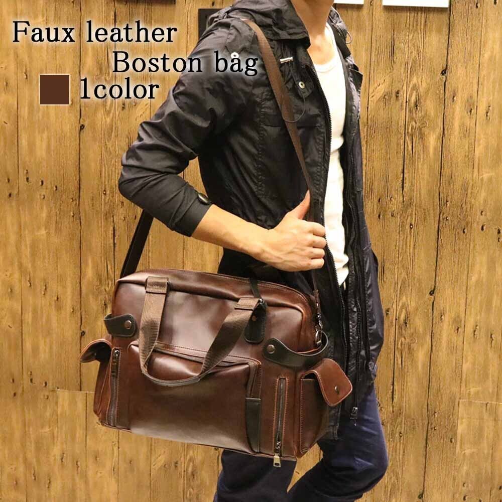 バイカラーとスモーククラスプ使いがアクセントになったフェイクレザーボストンバッグ。