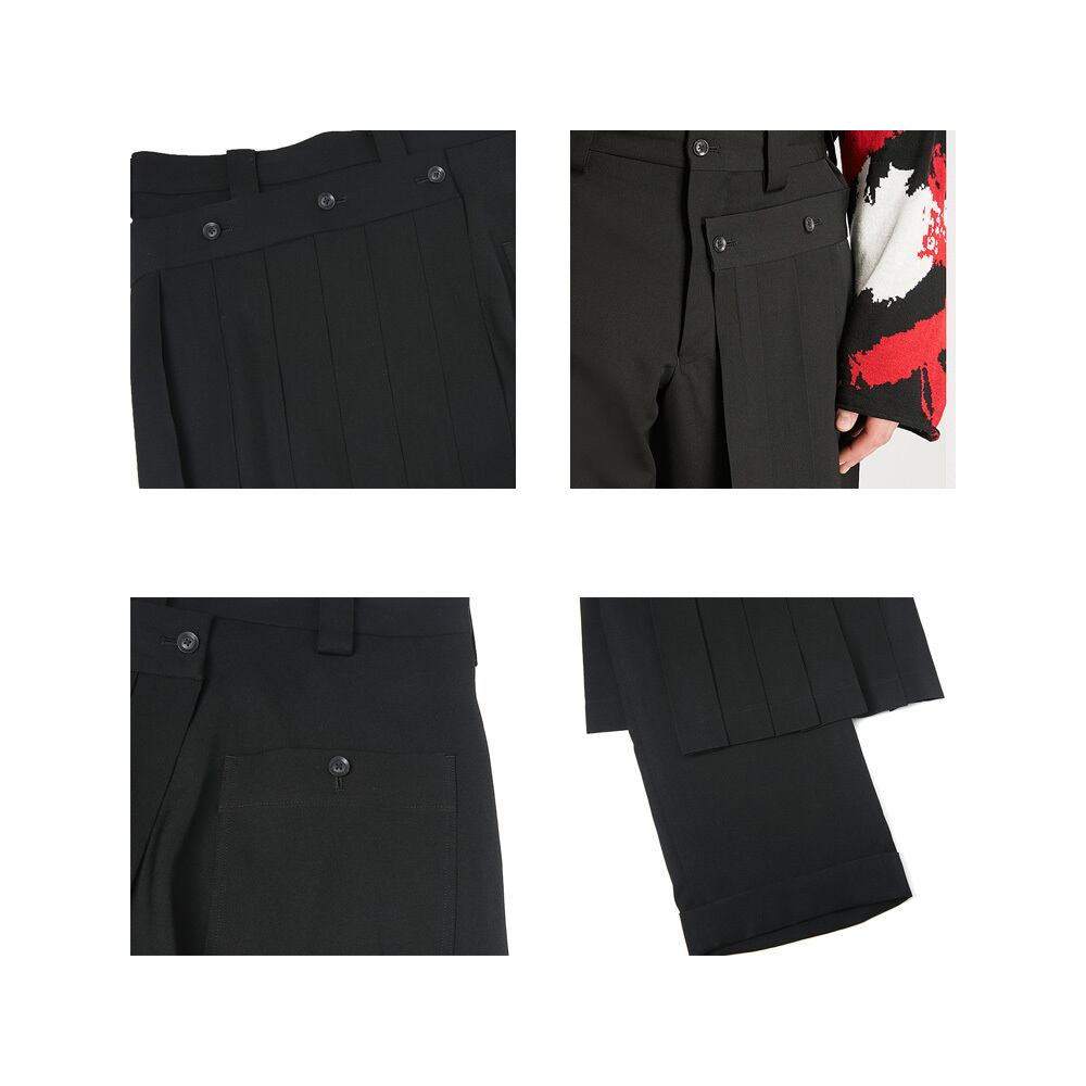 シンプルな黒のスラックスにプリーツ生地を組み合わせたレイヤード風デザイン。