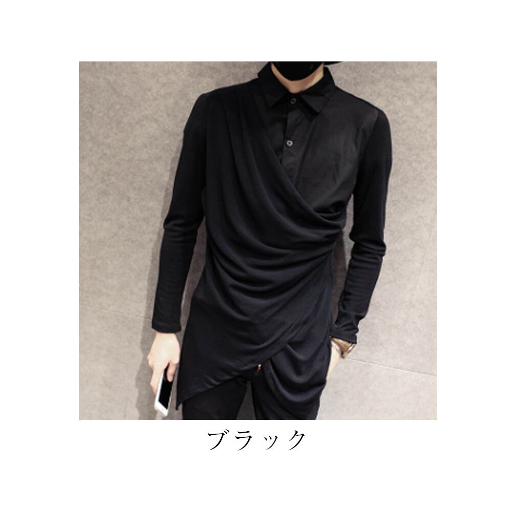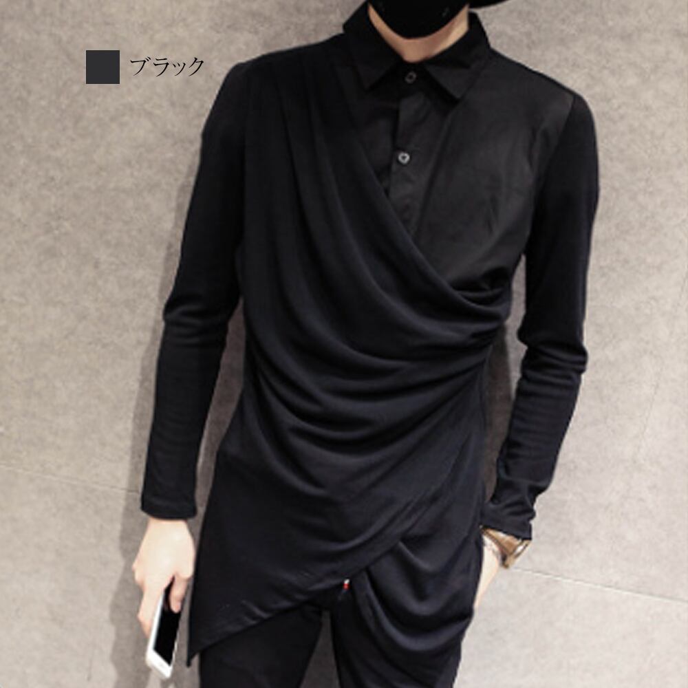 シャツのきちんと感がありながら、ドレープ生地がモードな印象に。