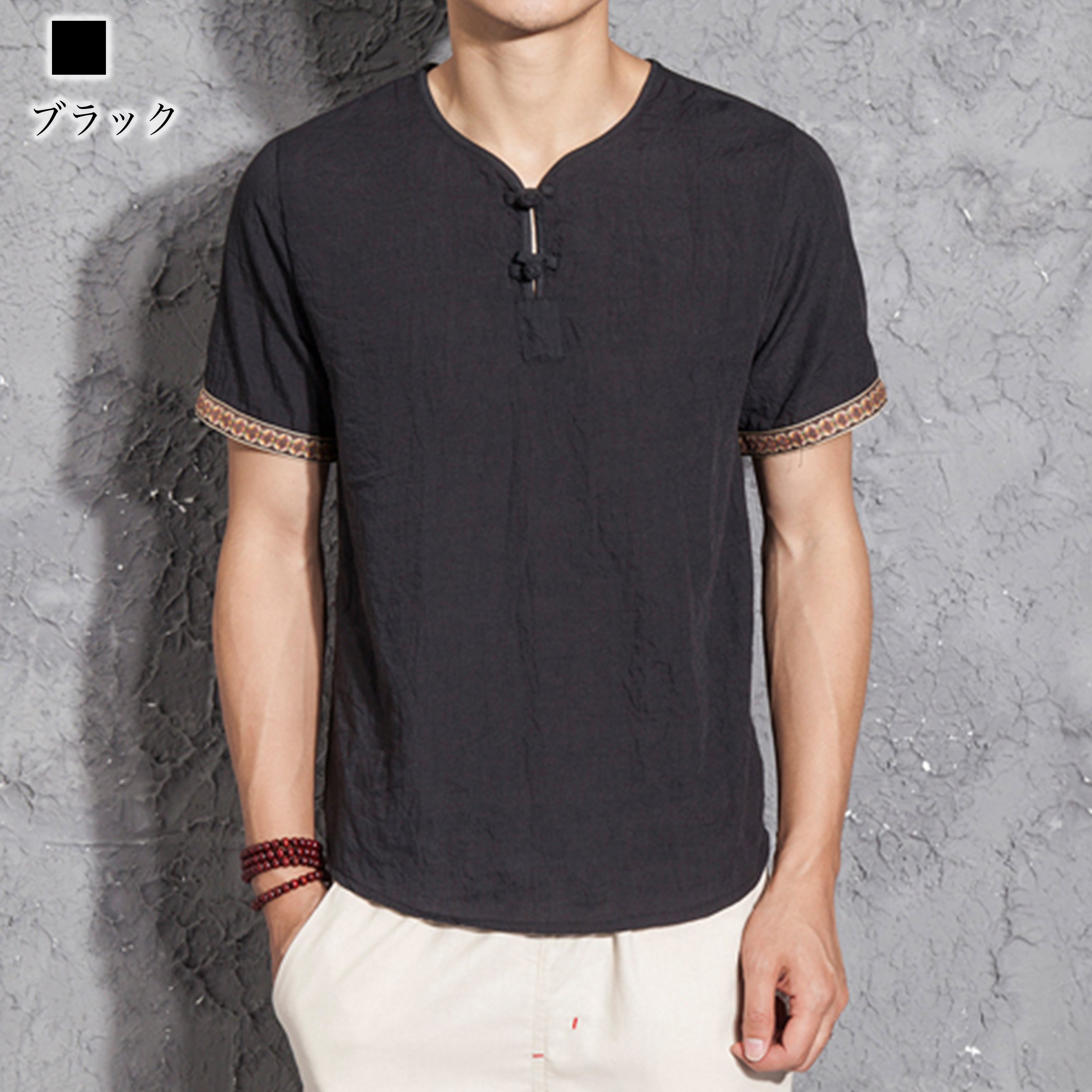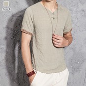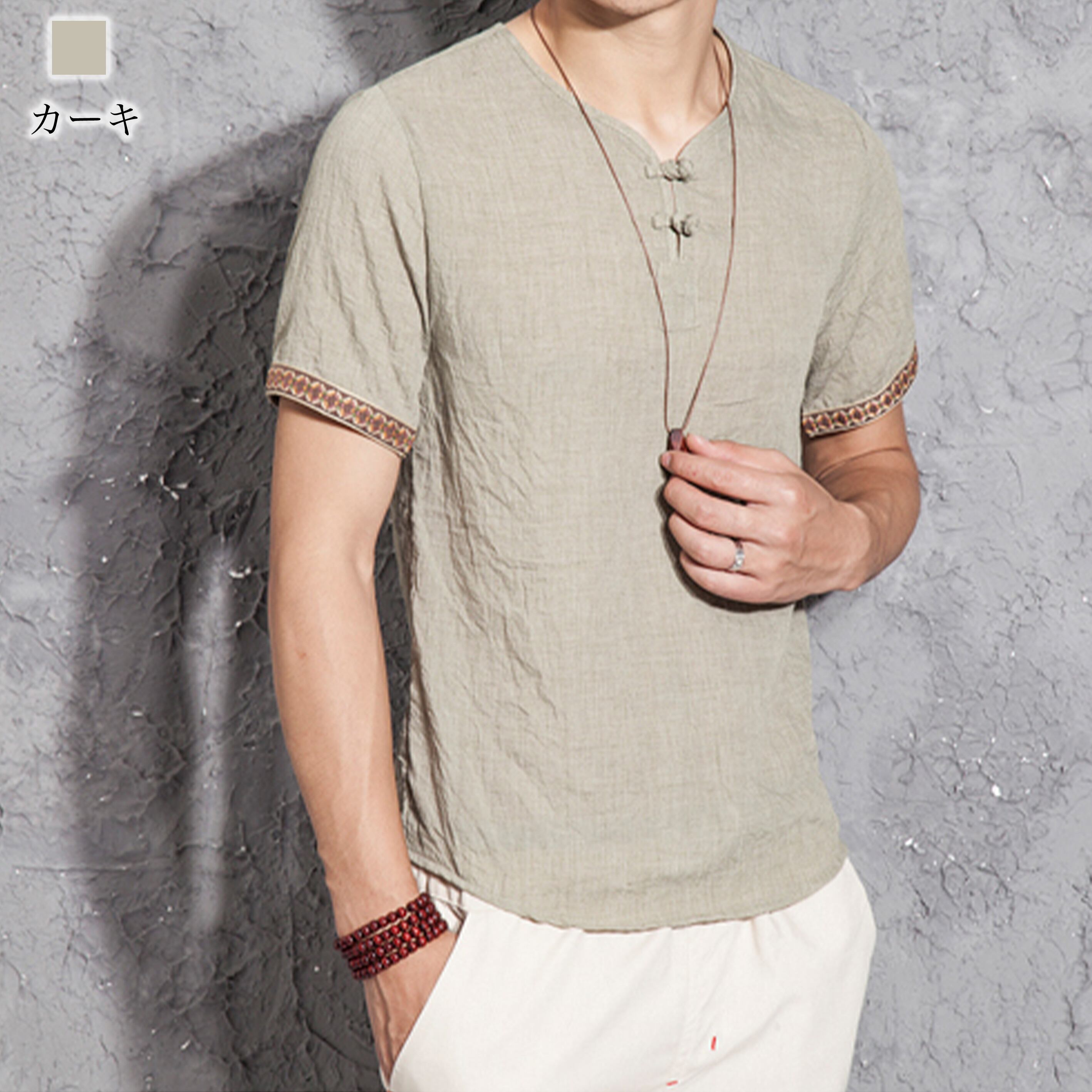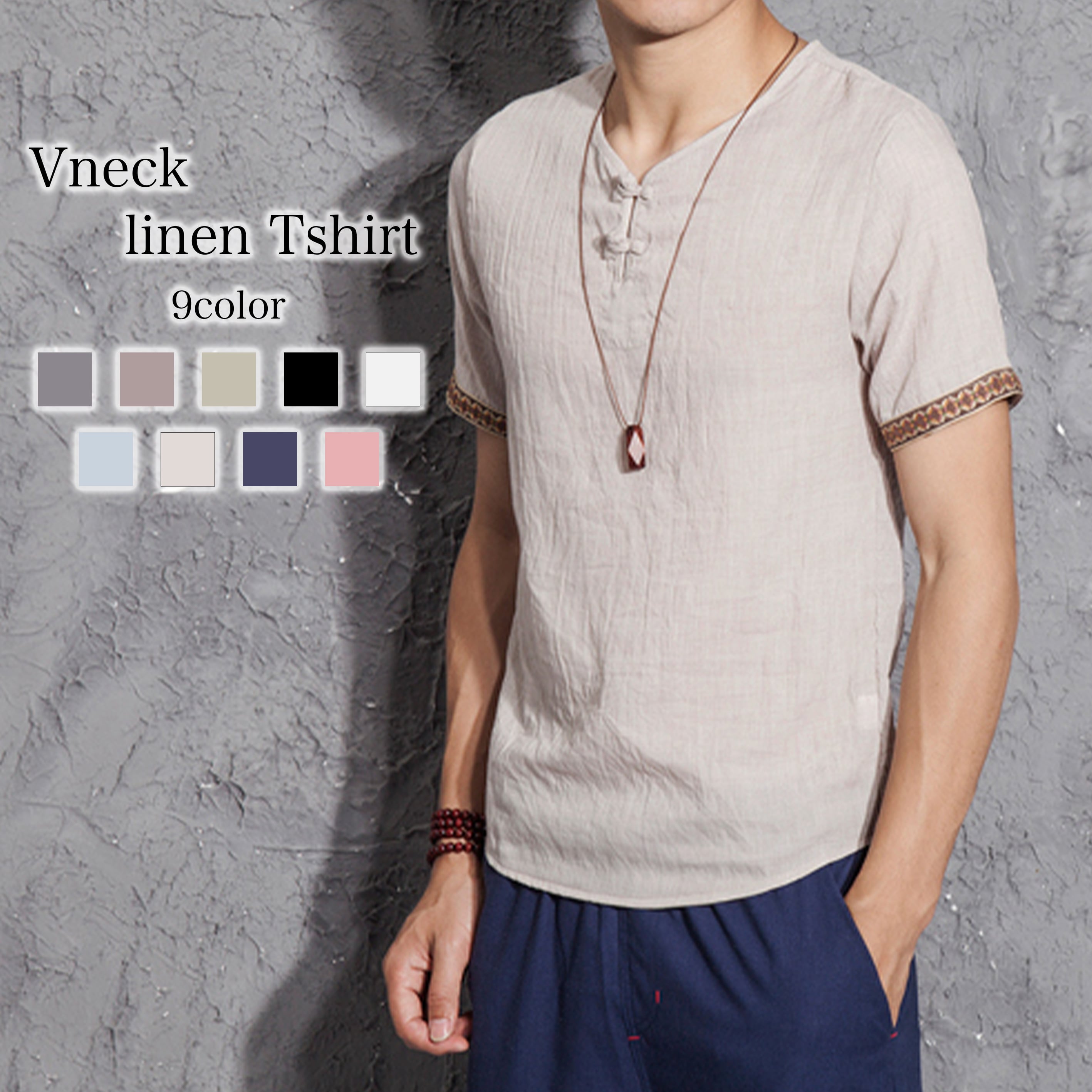 VネックリネンTシャツ