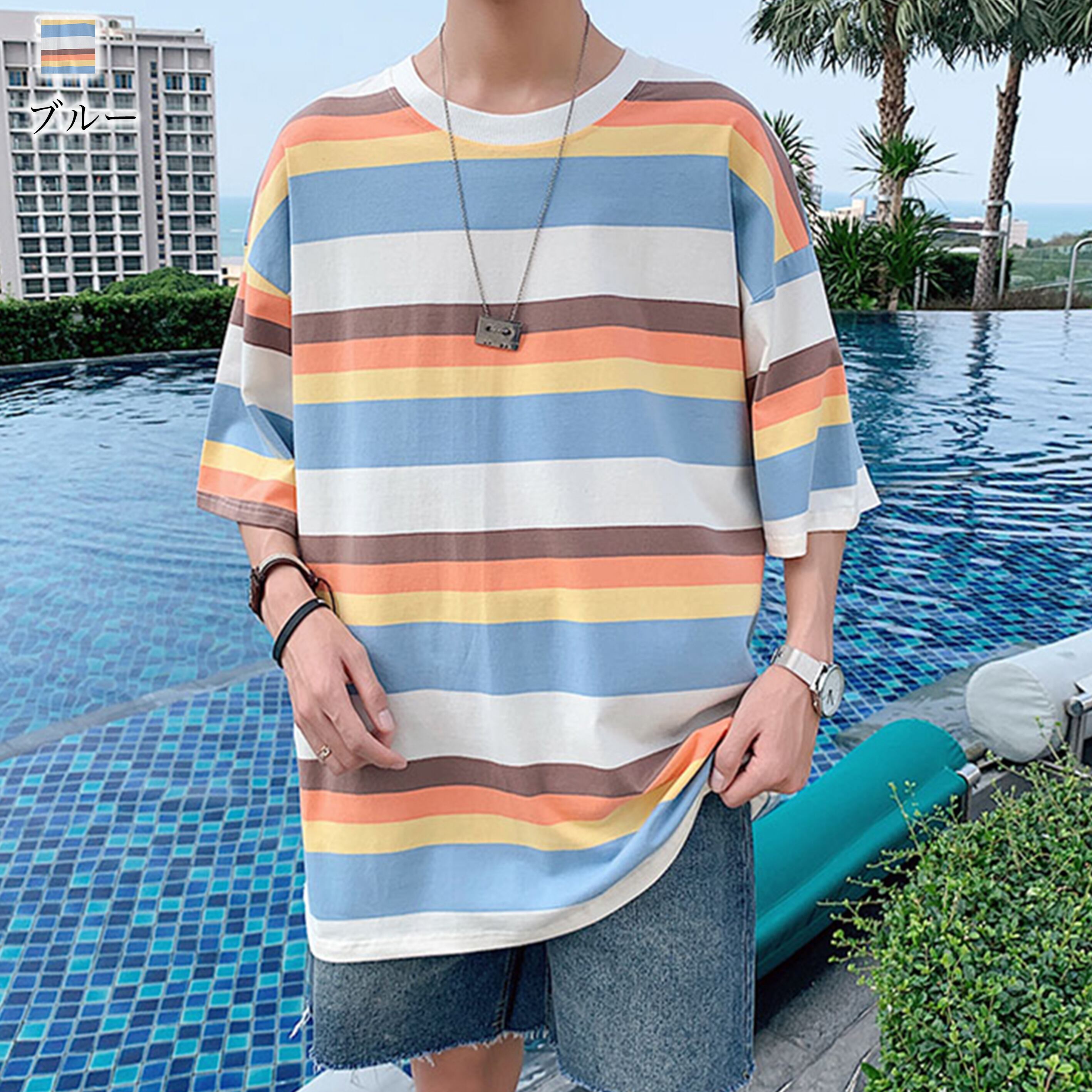 配色がお洒落すぎるマルチなボーダーTシャツは、