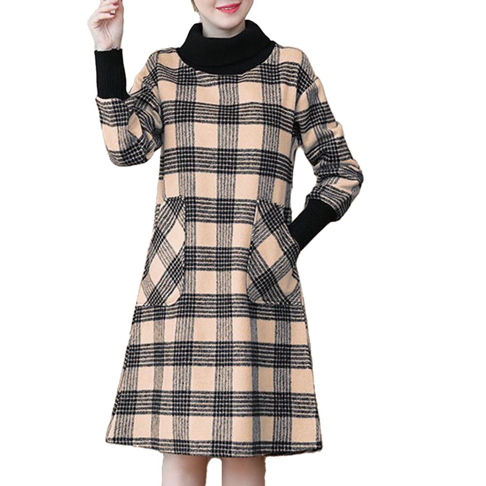 【即納&送料無料】 ハイネックチェックワンピース ワンピース レディース lit-299
