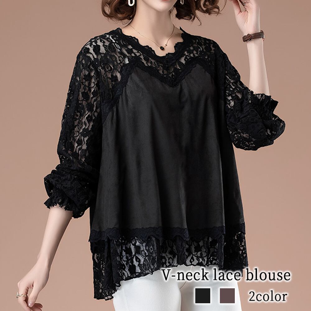 【即納&送料無料】 Vネックレースブラウス ブラウス レディース lit-337