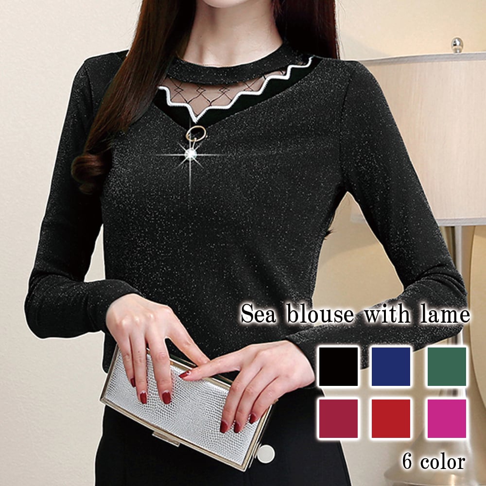 【即納&送料無料】 ラメ入りシアーブラウス ブラウス レディース lit-366