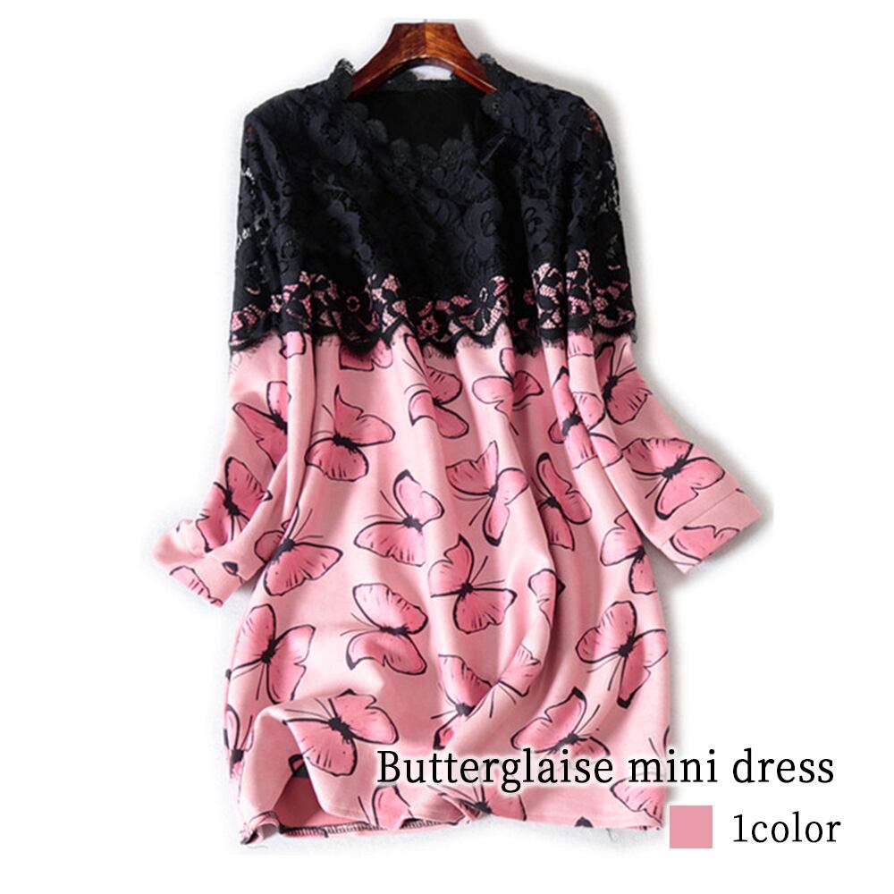 【即納&送料無料】 蝶柄ミニワンピース ワンピース レディース lit-374