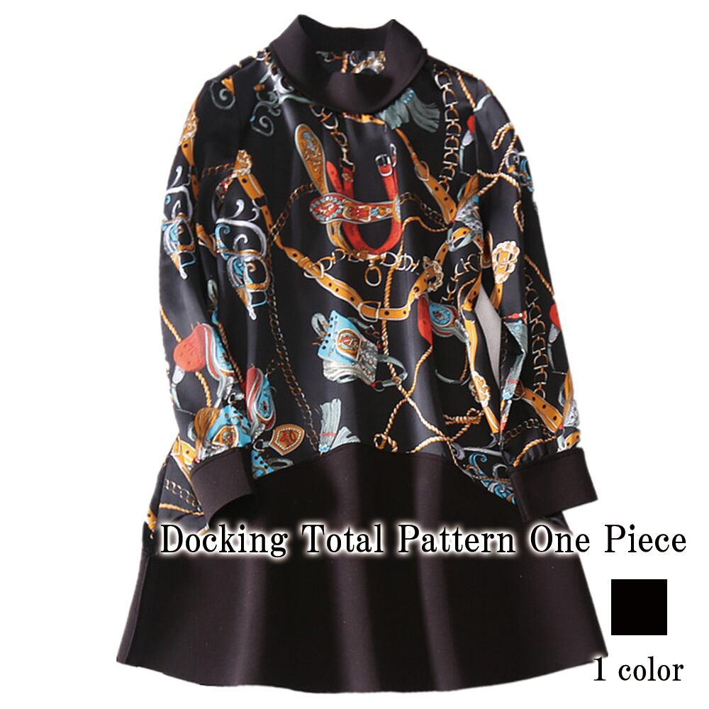 【即納&送料無料】 ドッキング総柄ワンピース ワンピース レディース lit-386