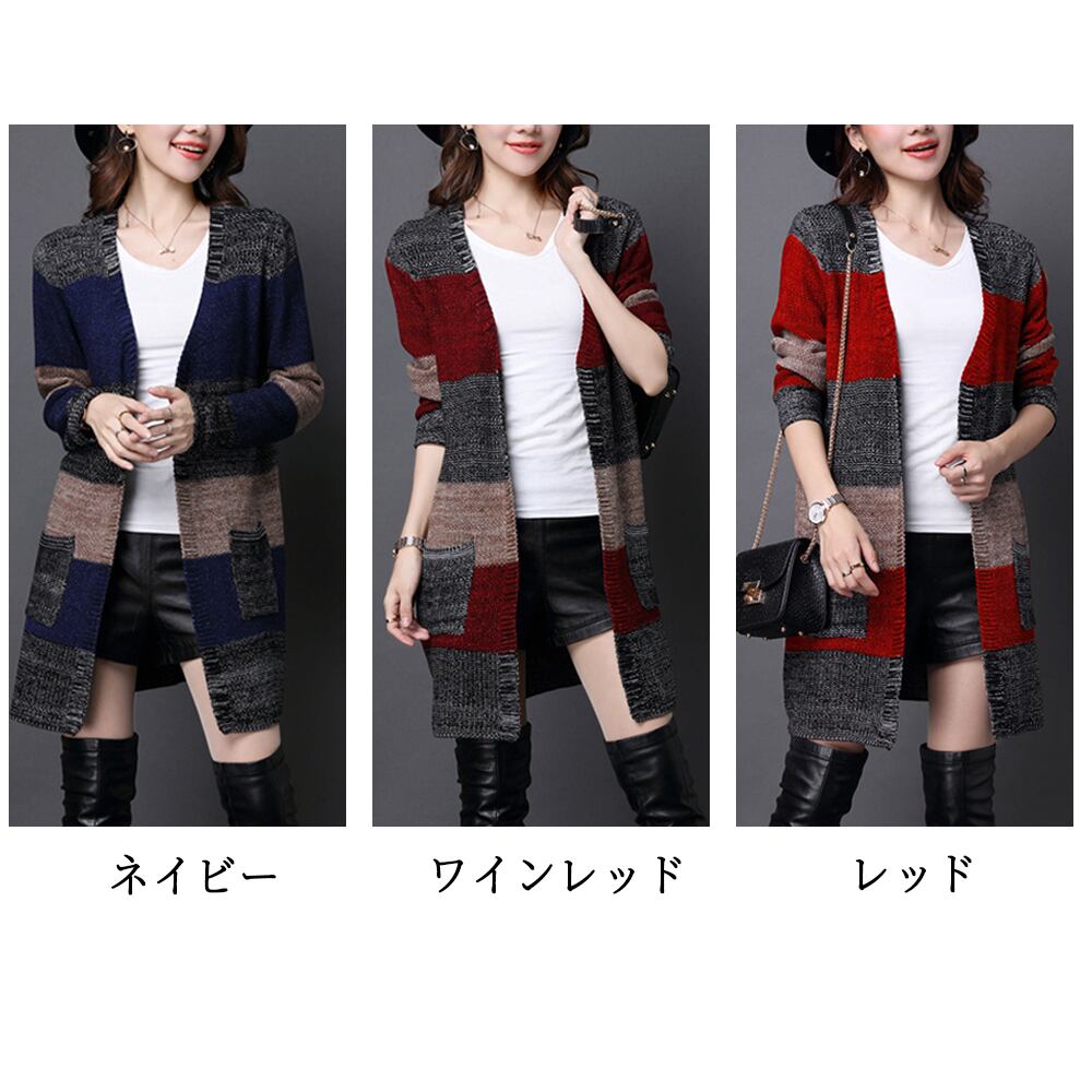 【即納&送料無料】 バイカラーロングカーディガン カーディガン レディース lit-395
