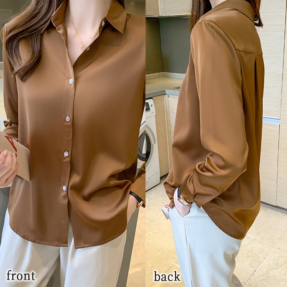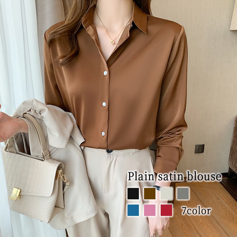 無地サテンブラウス
