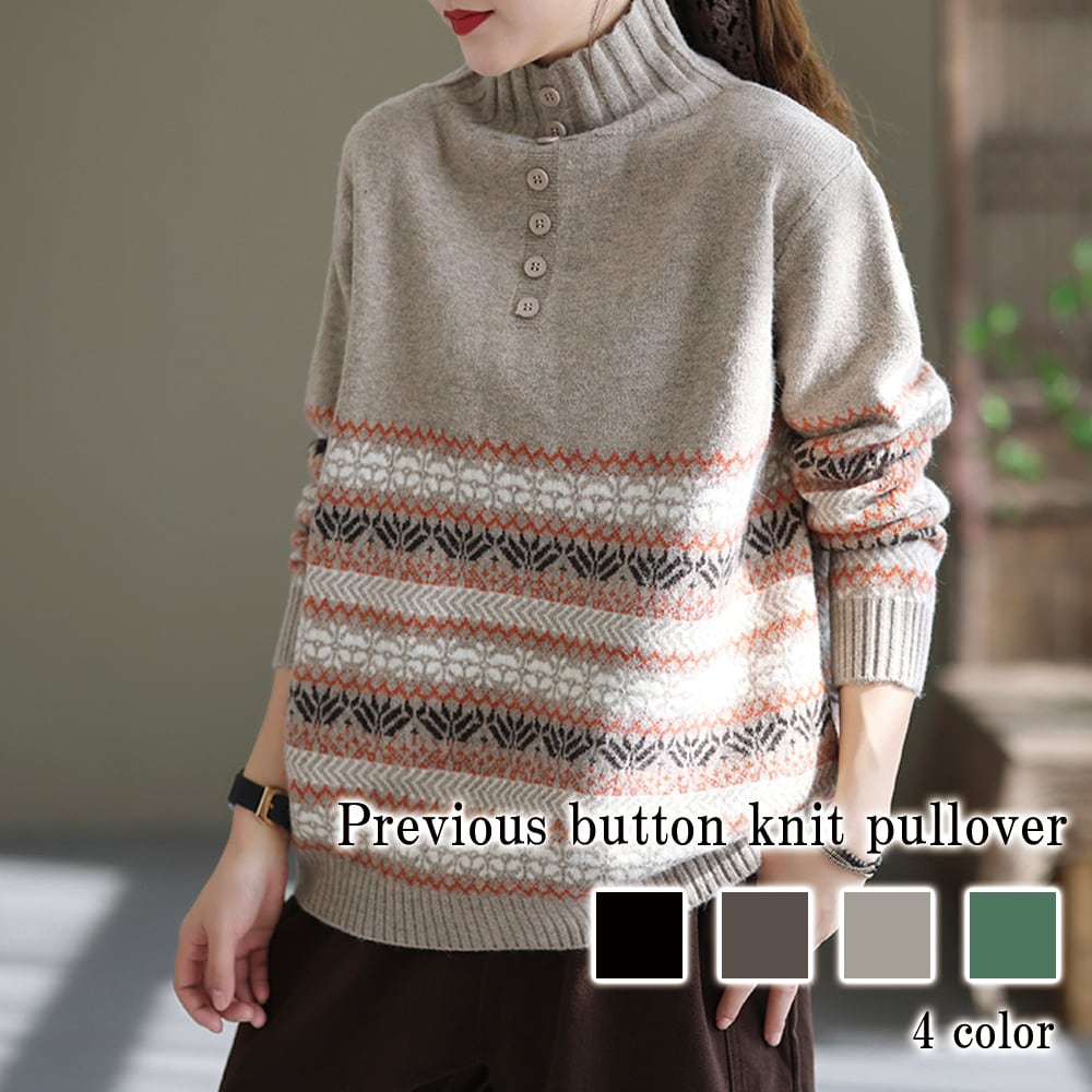 前ボタンニットプルオーバー