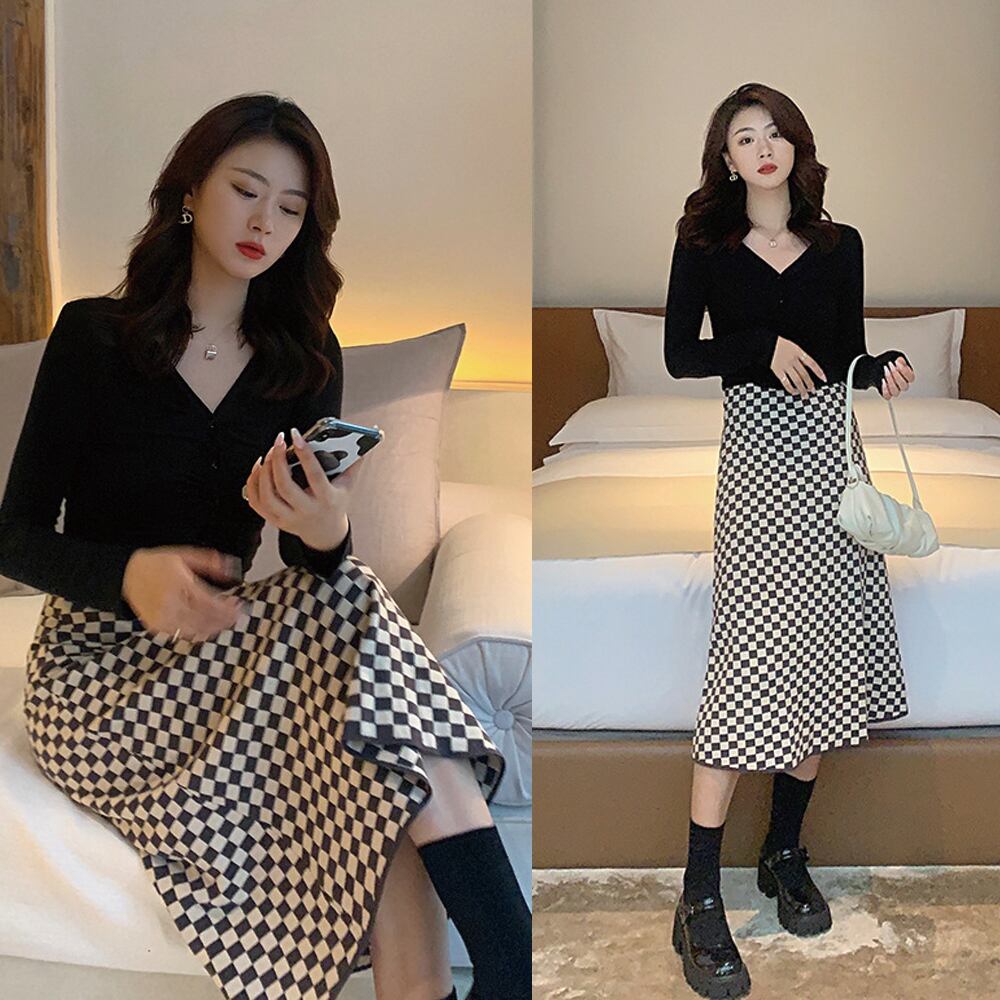 【即納&送料無料】 Aラインチェック柄スカート ロングスカート レディース lip-121