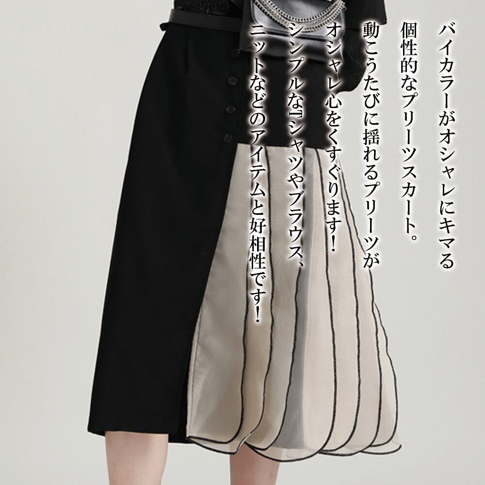 【即納&送料無料】 バイカラープリーツスカート スカート レディース lip-127
