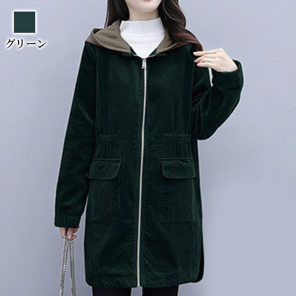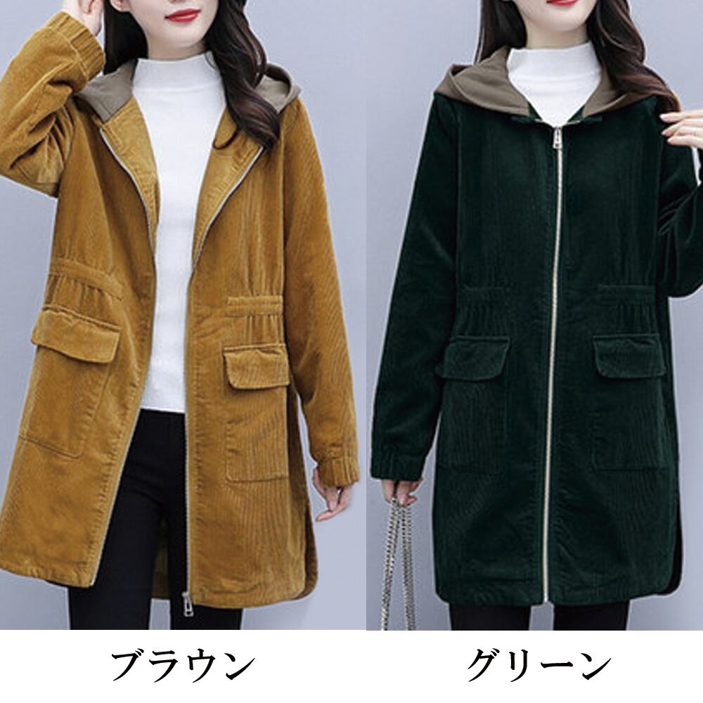 【即納&送料無料】 フード付きコーデュロイコート カジュアルコート レディース lia-161