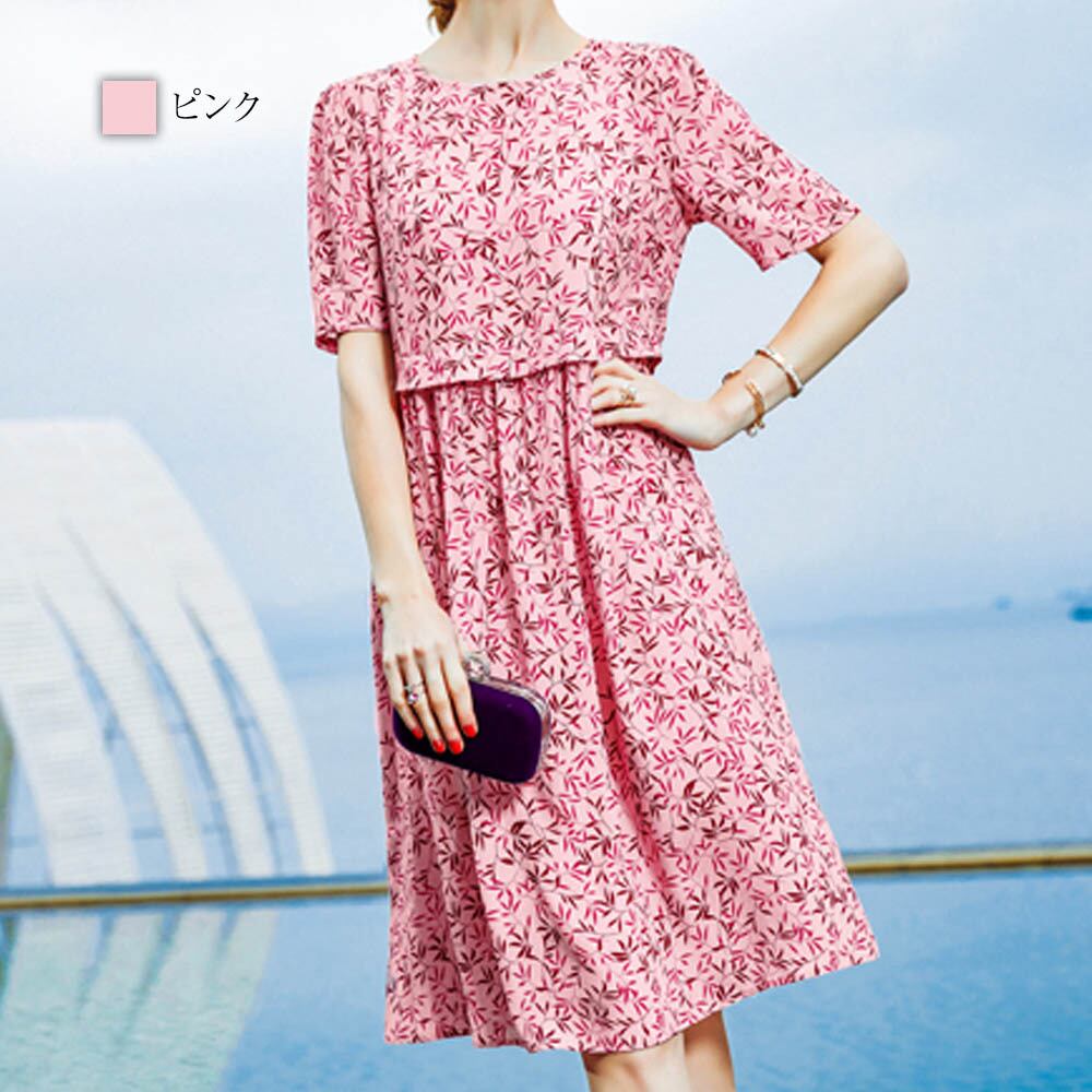 【即納&送料無料】 リーフ柄ワンピース ワンピース半袖 レディース tpsw-plus103