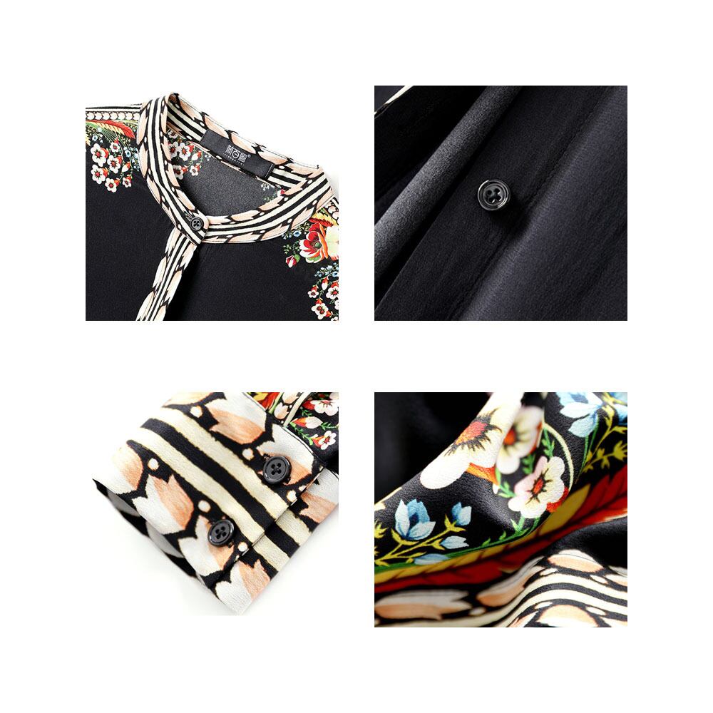 シルクフラワープリントシャツ