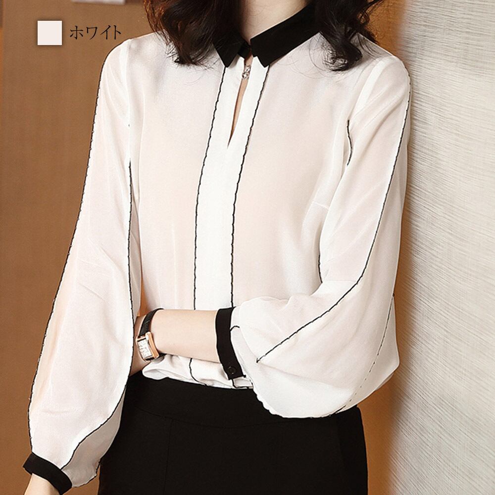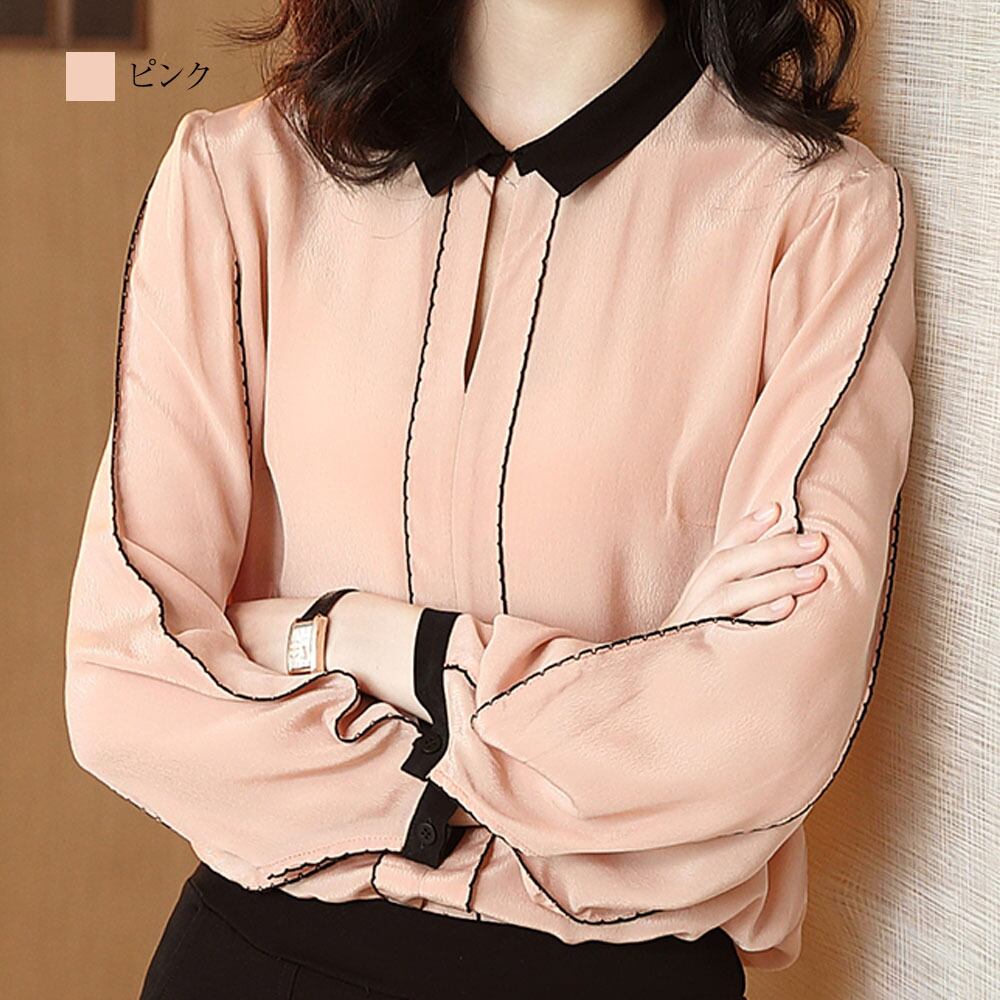 【即納&送料無料】 ステッチシフォンシャツ ブラウス長袖 レディース tpsw-plus18