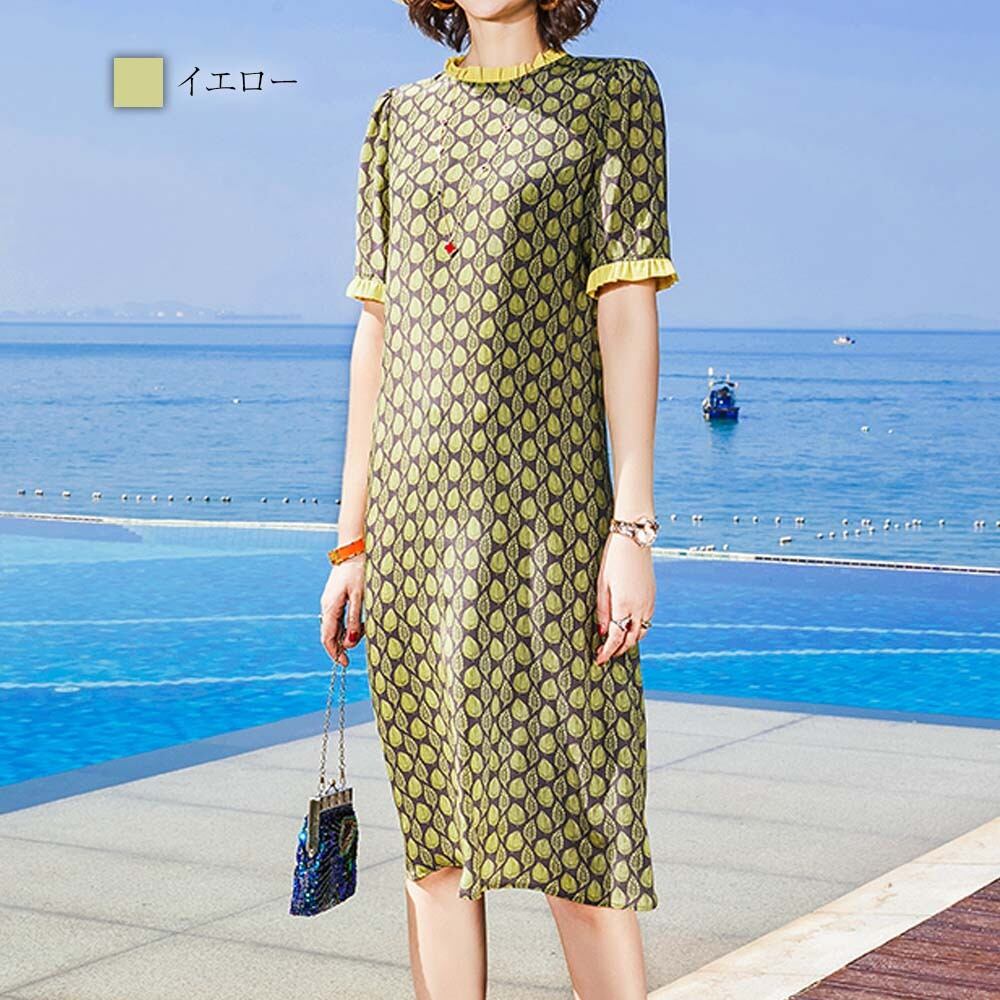 【即納&送料無料】 リーフ柄フリルワンピース ワンピース半袖 レディース tpsw-plus80
